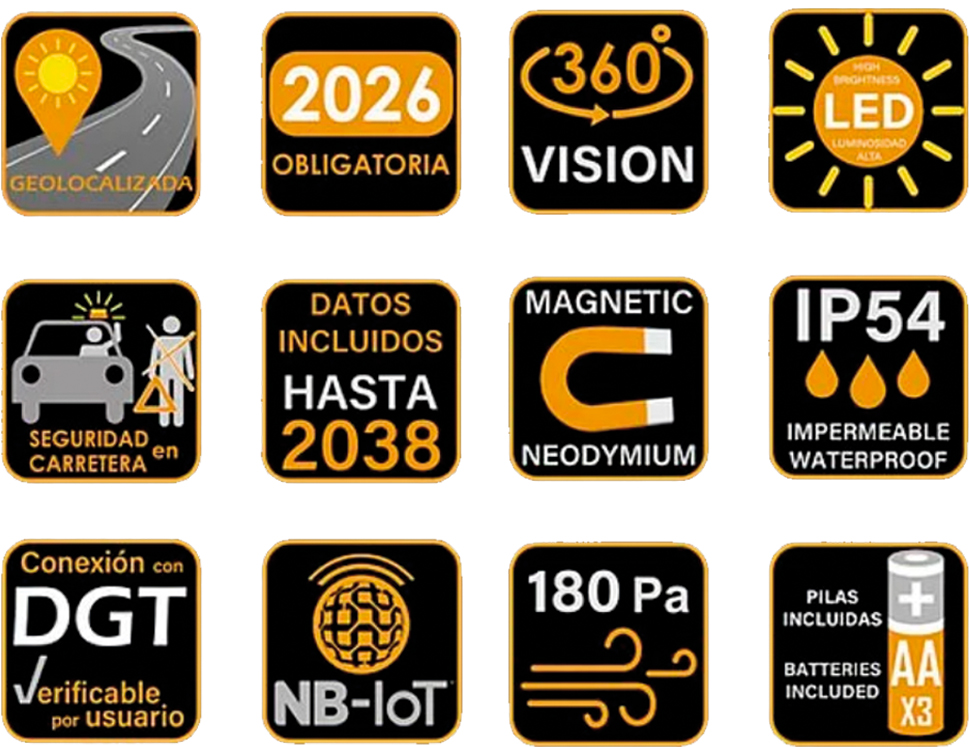 - Obligatoria a partir del 1 de enero de 2026 para reemplazar los tradicionales triángulos.